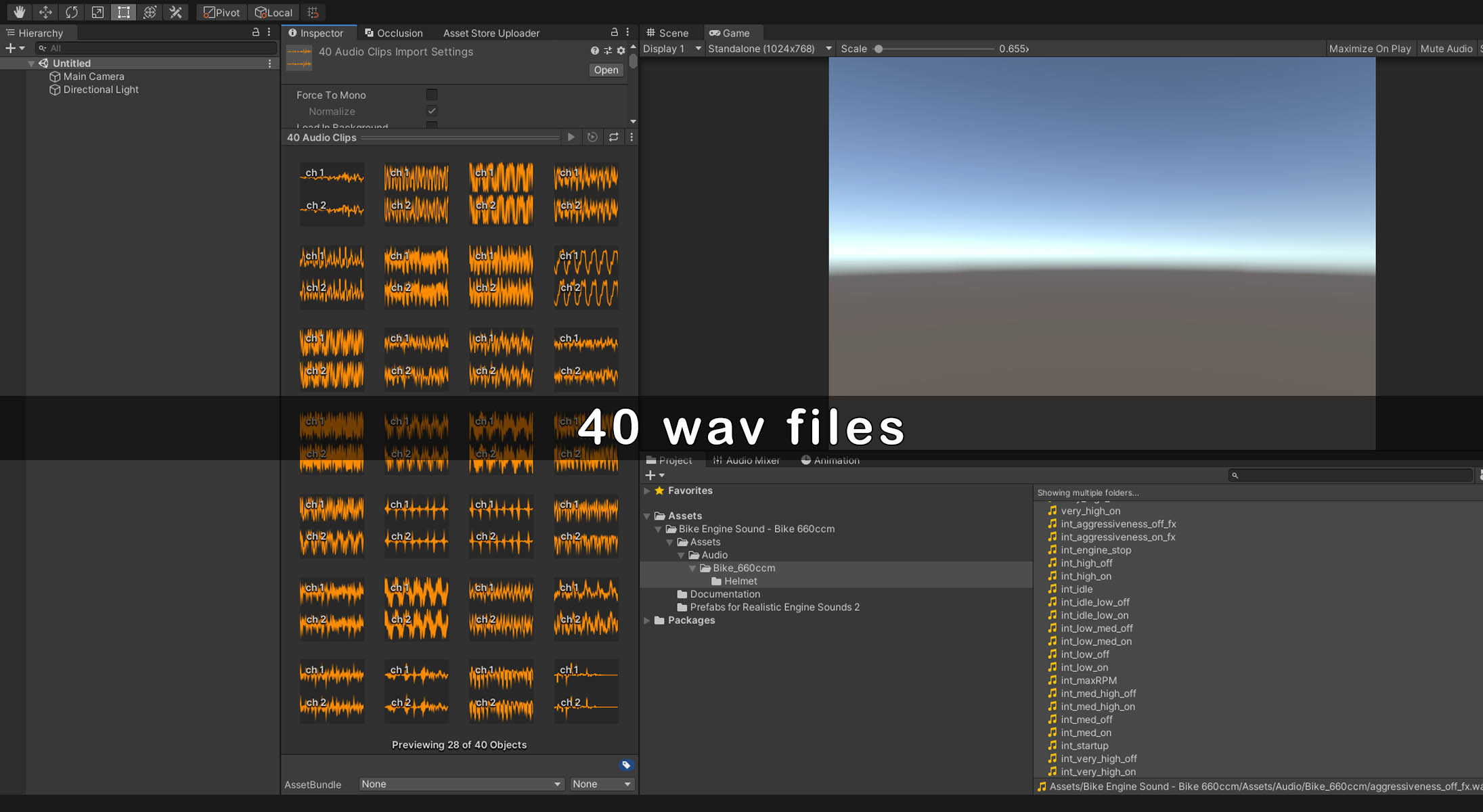 Game ready, seamlessly looping sound clips of a 660ccm enduro bike. Ideal sound pack for enduro bikes and motorcross bikes. Compatible with Realistic Engine Sounds 2 asset.