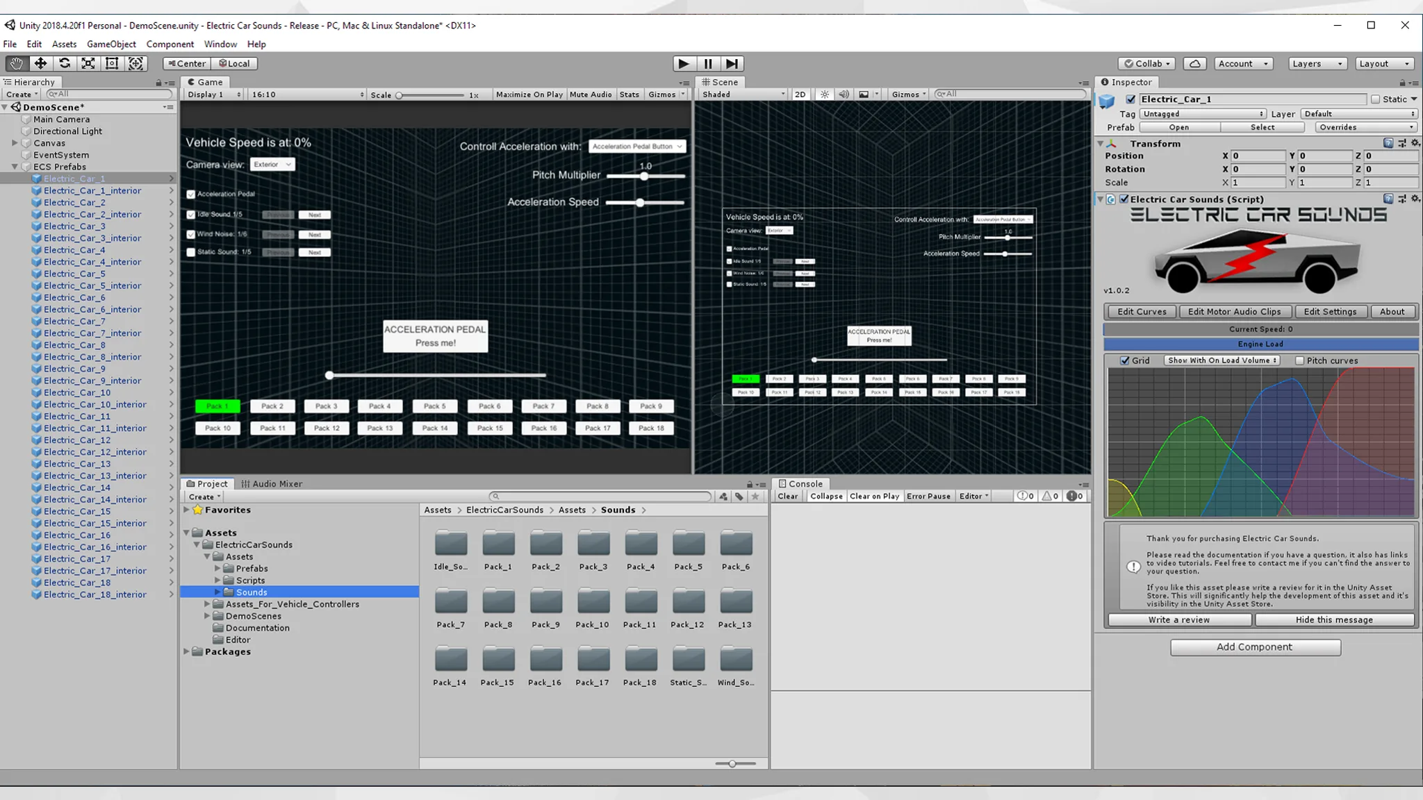 Electric Car Sound comes with 18 electric engine sound packs designed for electric vehicles. Easy to set up and features a user-friendly custom editor. Compatible with 26 vehicle physics controllers.
