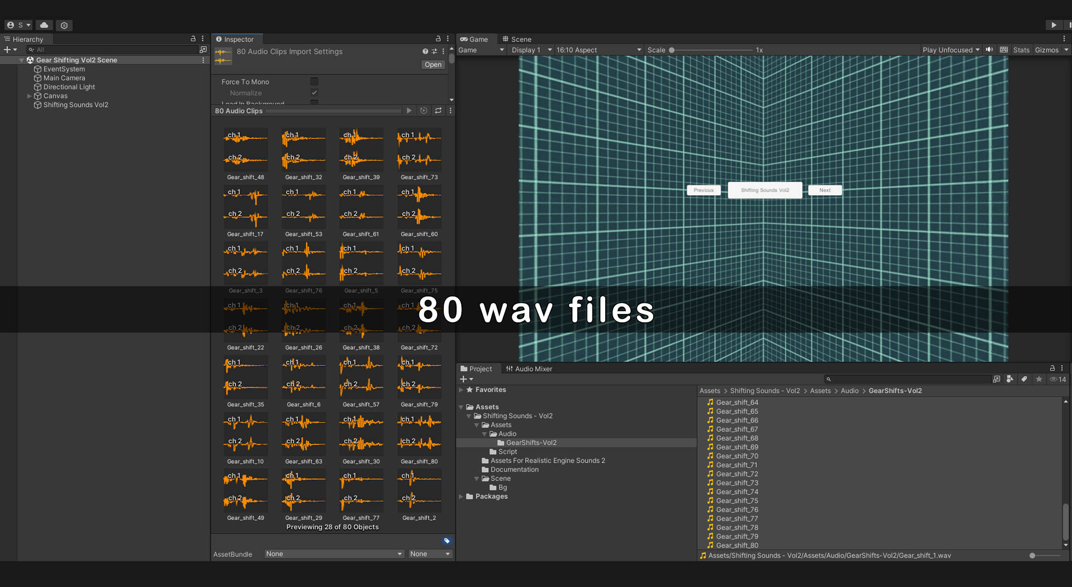 80 WAV files of regular shifting sounds